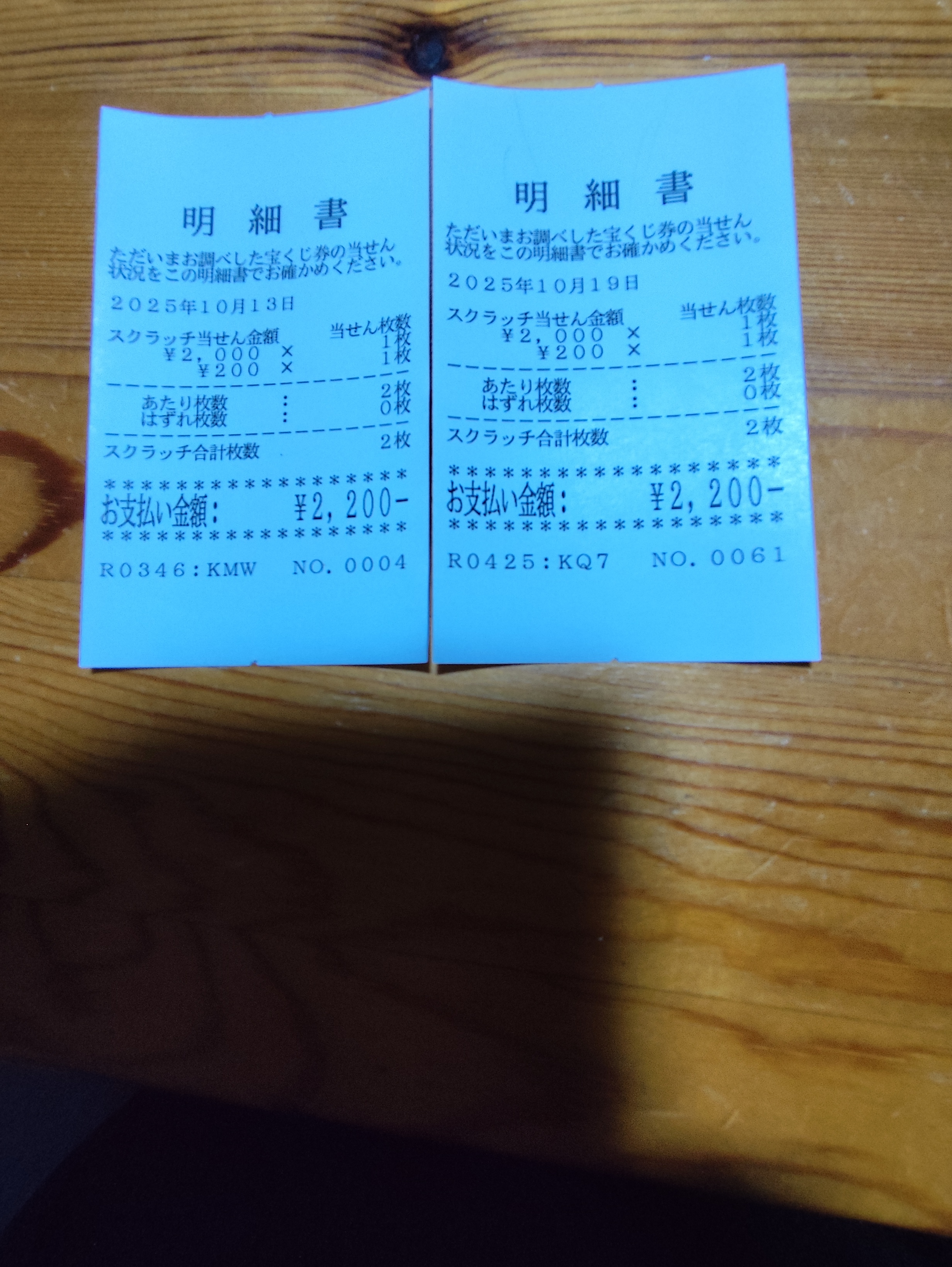 今まで、スクラッチは末当選しかしたことなかったのですが、同じスクラッチで続けて2000円当選しました。