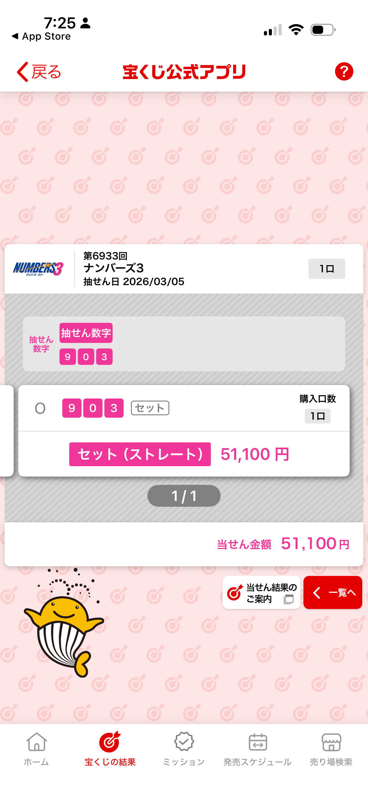 ナンバーズで初めて当たりました!