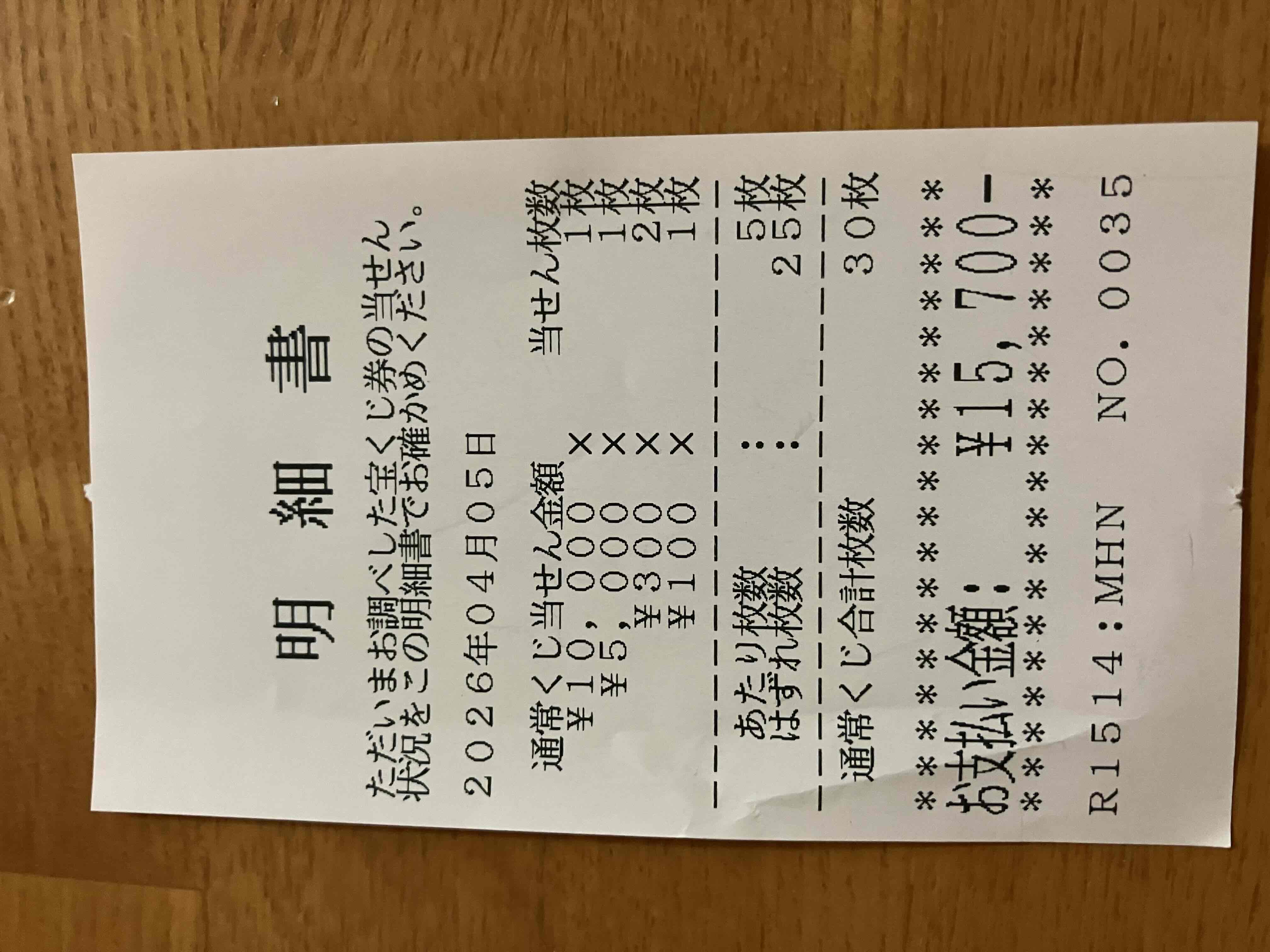 バレンタインジャンボ10枚、100円くじを10枚買ったら15700円当たりました🎯